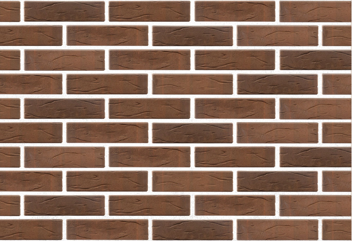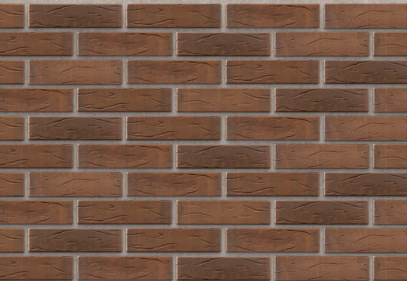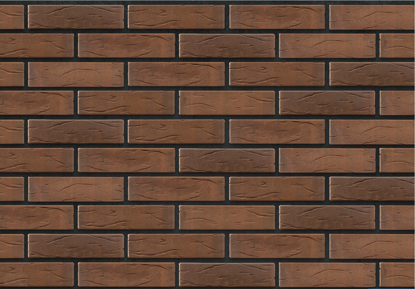 Оригинальный красно-коричневый пестрый цвет и рельефная лицевая поверхность. Производится из смеси красножгущейся глины, песка и тритетраоксида марганца по технологии объемного окрашивания и окислительного обжига.
