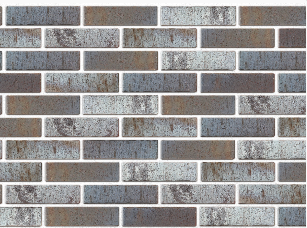 Исключительный глянцевый, медно-серый цвет и рельефная лицевая поверхность. Производится из смеси красножгущейся глины и песка с торкретированием лицевой поверхности натуральными минеральными компонентами по технологии редукционного-flash обжига. Отличительной особенностью данного вида кирпича является рельефная фаска.
