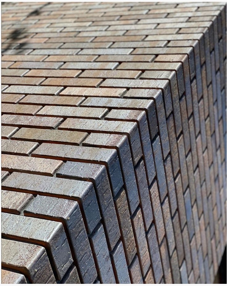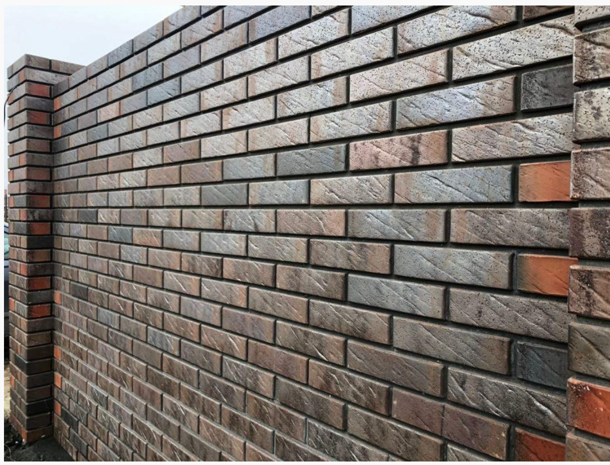 Уникальный глянцевый, медно-серый пестрый цвет и рельефная лицевая поверхность. Производится из смеси красножгущейся глины и песка с торкретированием лицевой поверхности натуральными минеральными компонентами по технологии редукционного-flash обжига.