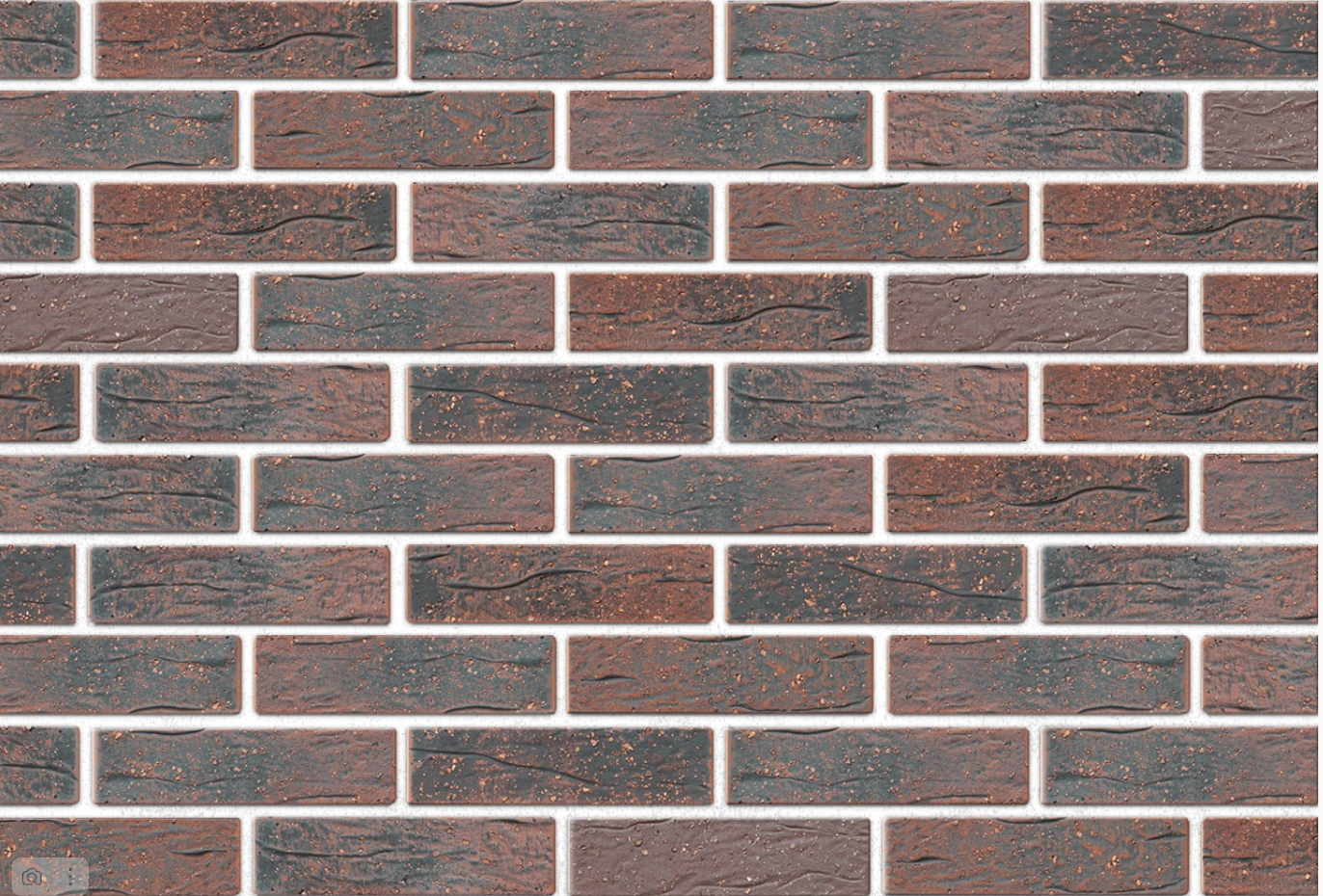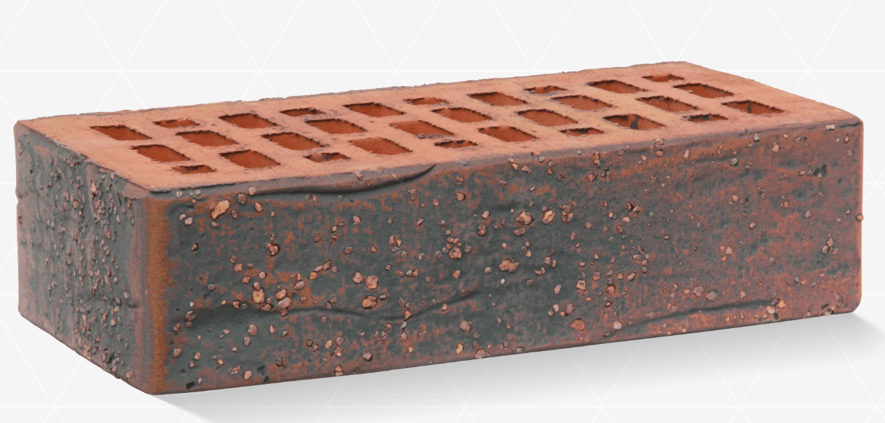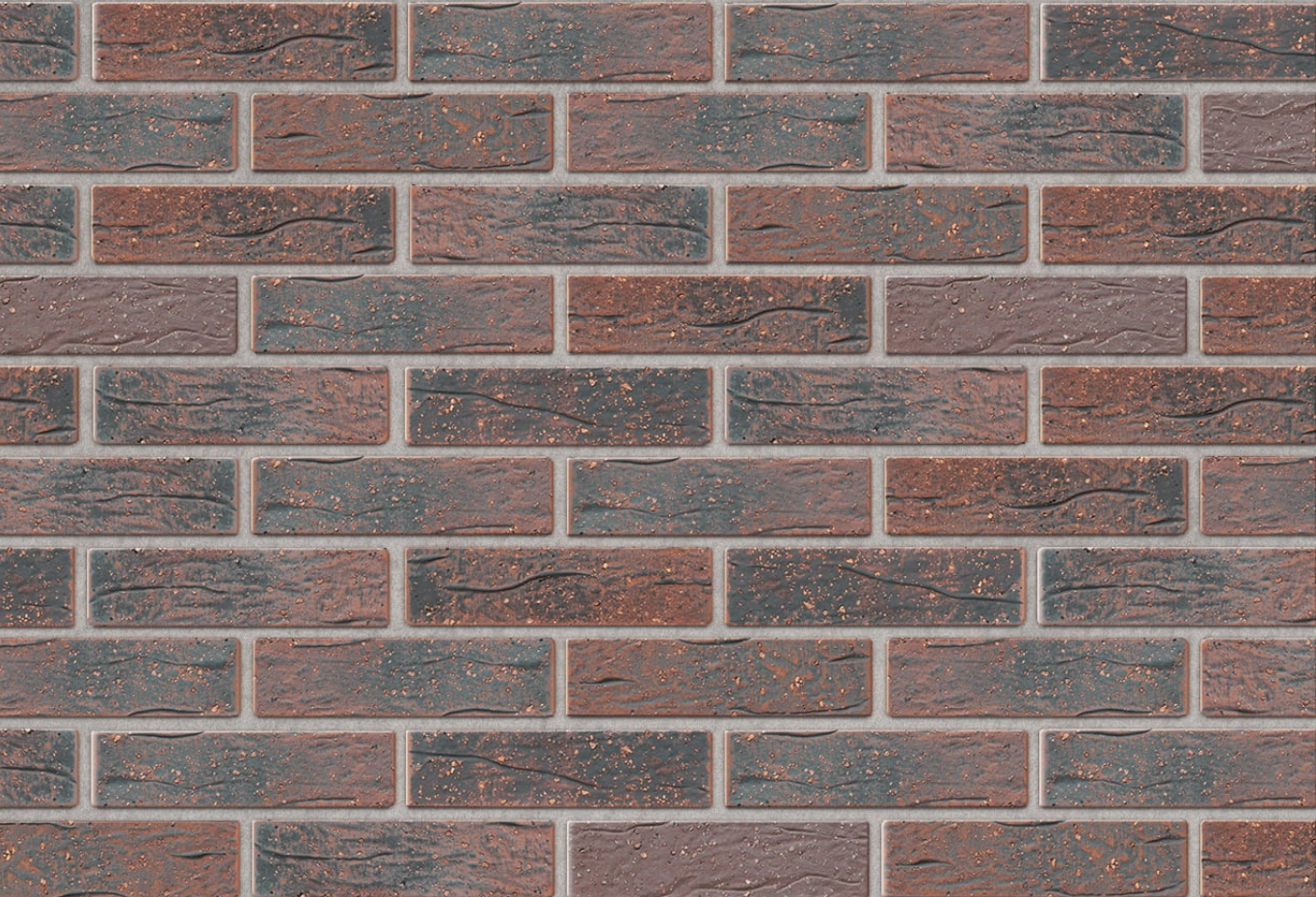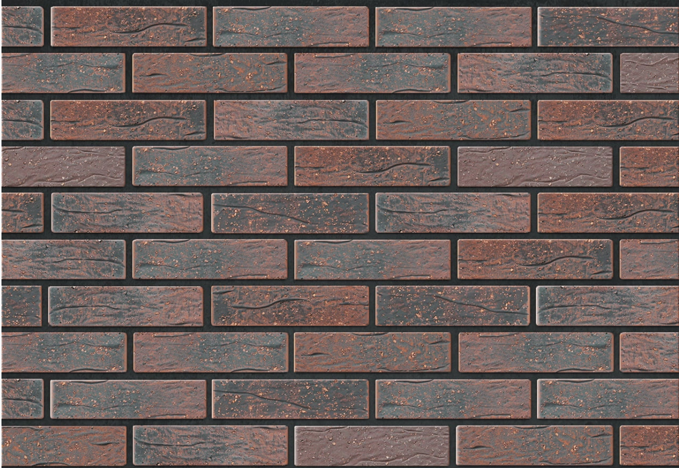 Уникальный серо-черно-фиолетовый цвет и рельефная лицевая поверхность. Производится из смеси красножгущейся глины и песка с торкретированием лицевой поверхности натуральными минеральными компонентами и крупнофракционным кварцевым песком по технологии редукционного-flash обжига.