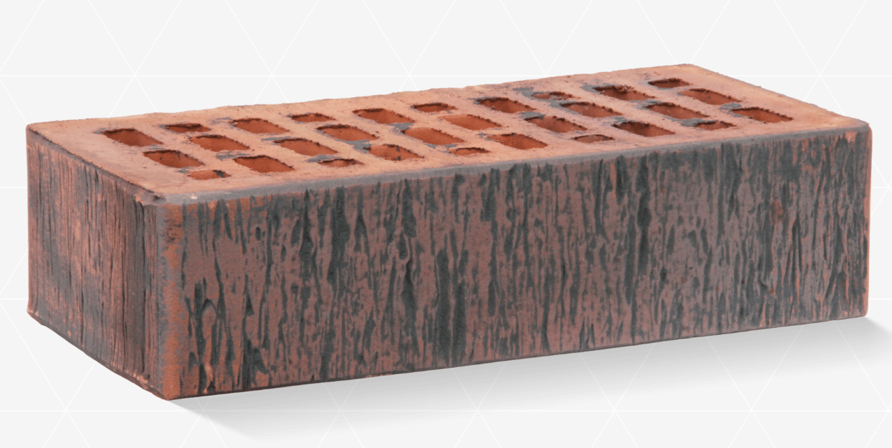 Неповторимый серо-черно-фиолетовый цвет и рельефная лицевая поверхность. Производится из смеси красножгущейся глины и песка с торкретированием лицевой поверхности натуральными минеральными компонентами по технологии редукционного-flash обжига.