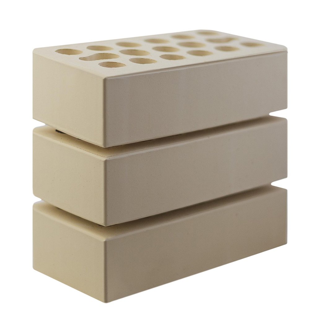 Изготовлен пустотелый кирпич из высококачественной глины, которая обжигается при температуре около 1000 °C.
