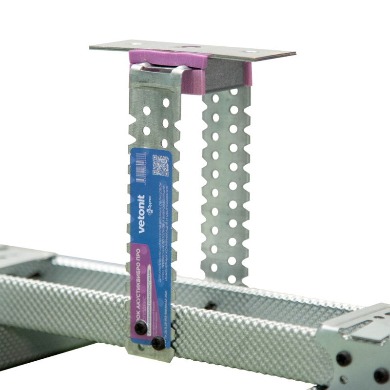 Vetonit (Gyproc) АкустикВибро ПРО – профессиональный виброподвес с увеличенной толщиной виброизолирующего слоя для повышенной защиты от шума и расширенной областью применения.