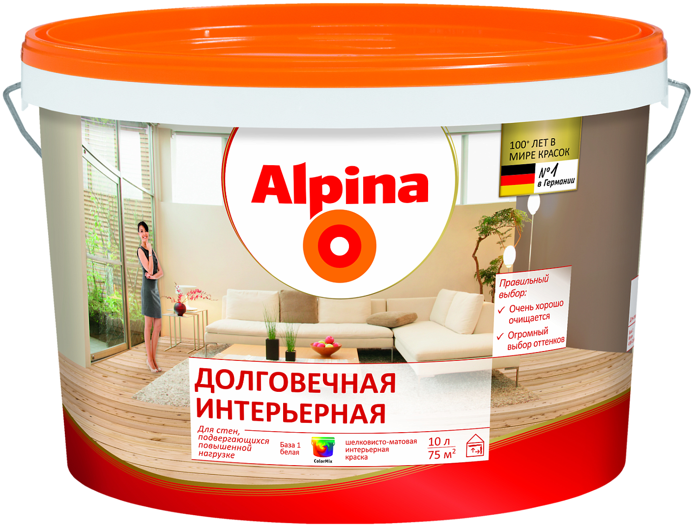 Краска водно-дисперсионная для внутренних работ Alpina Долговечная интерьерная База 1