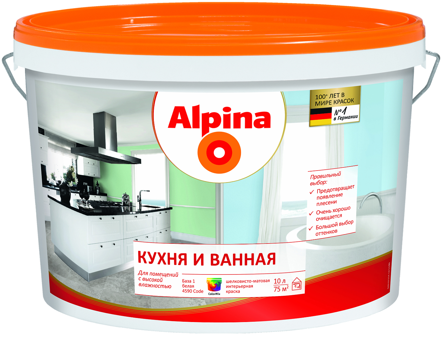 Краска водно-дисперсионная для внутренних работ Alpina Кухня и ванная База 1