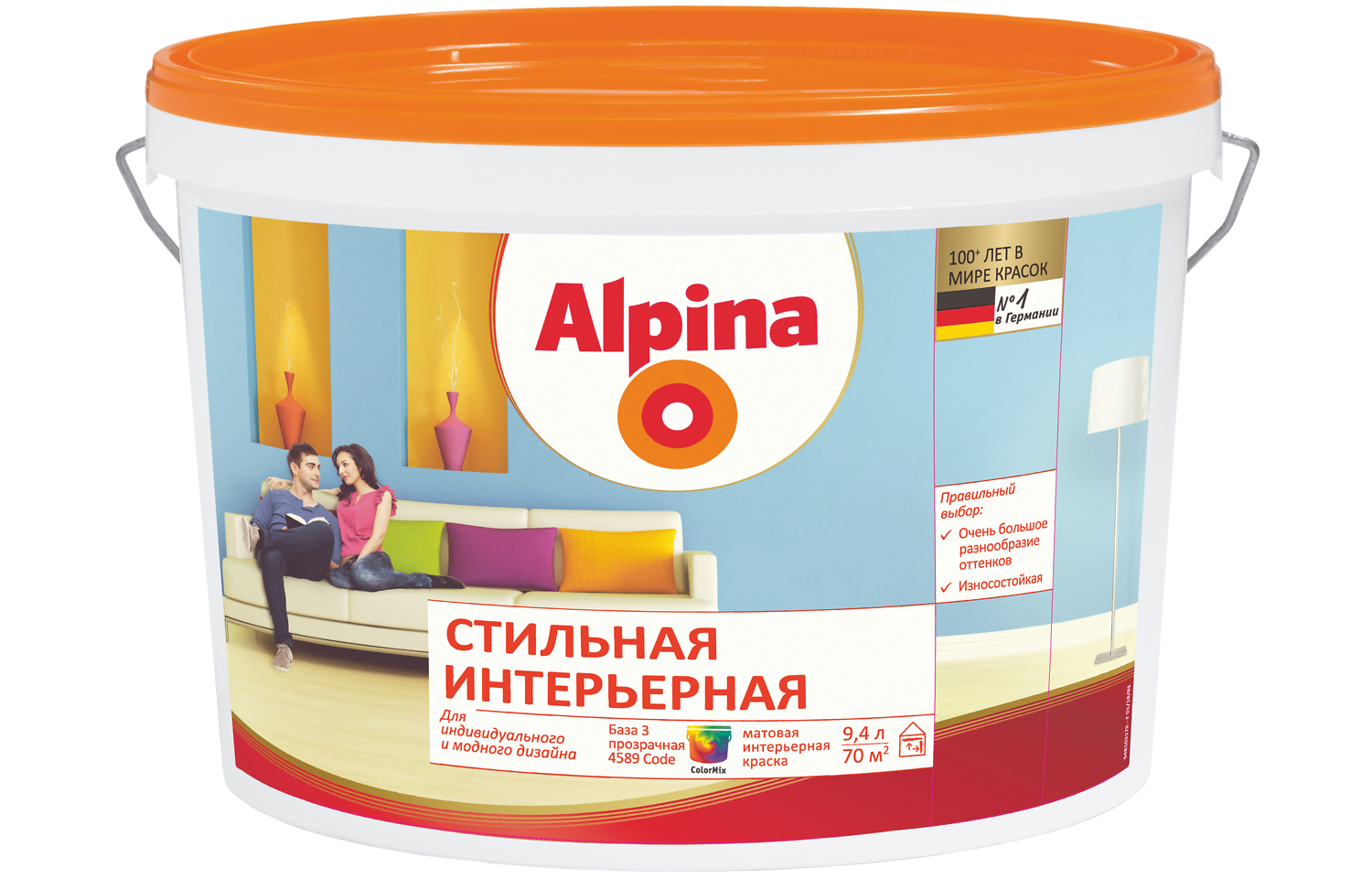 Краска водно-дисперсионная для внутренних работ Alpina Стильная интерьерная База 3