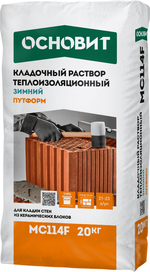 Теплоизоляционный кладочный раствор зимний ОСНОВИТ ПУТФОРМ МС114 F (20кг)
