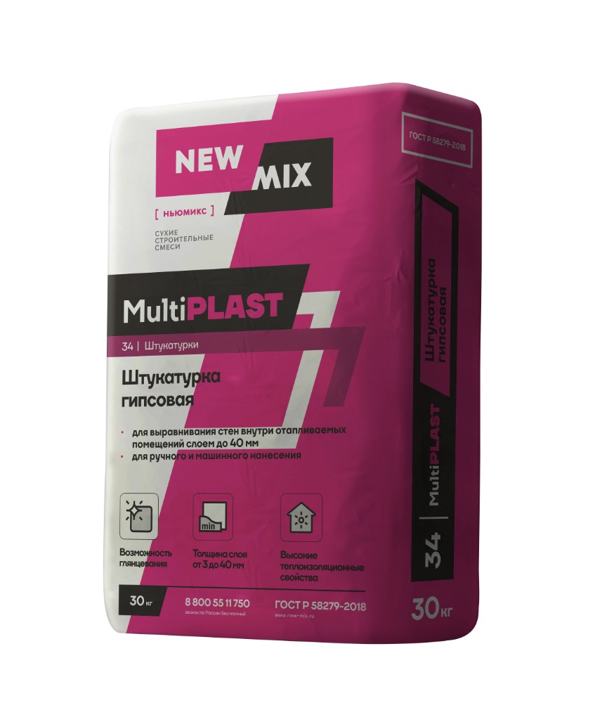 Штукатурка New Mix MultiPlast гипсовая 30кг