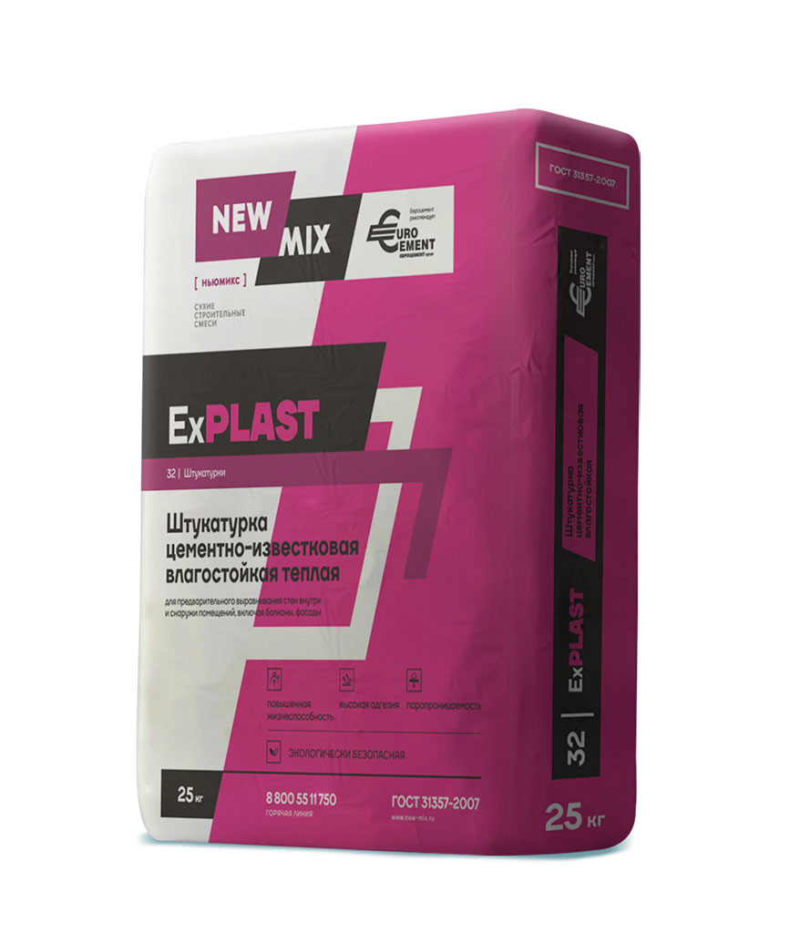 Штукатурка цементно-известковая влагостойкая теплая ExPLAST