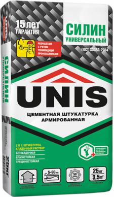 Unis СИЛИН УНИВЕРСАЛЬНЫЙ армированный штукатурка цементная 25 кг