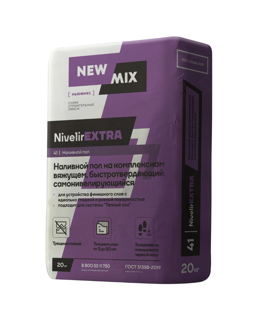 Наливной пол New Mix Nivelir Extra быстротвердеющий самонивелирующийся 20кг