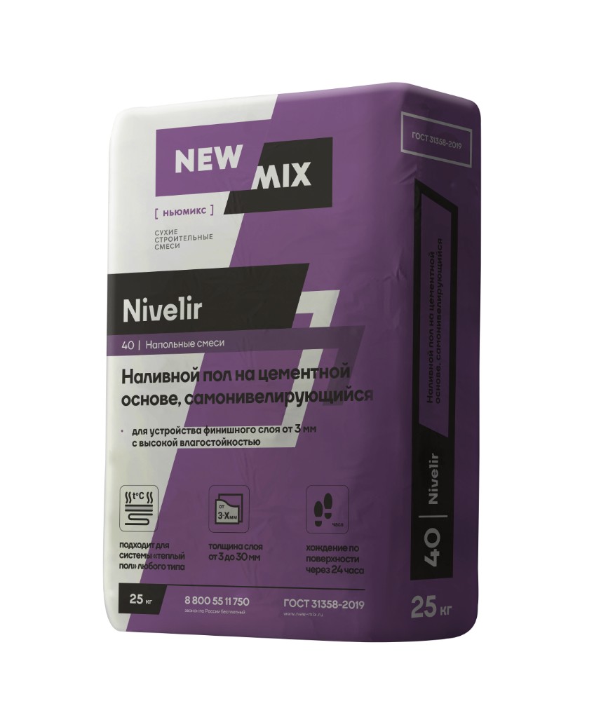 Наливной пол New Mix Nivelir на цементной основе самонивелирующийся 25кг