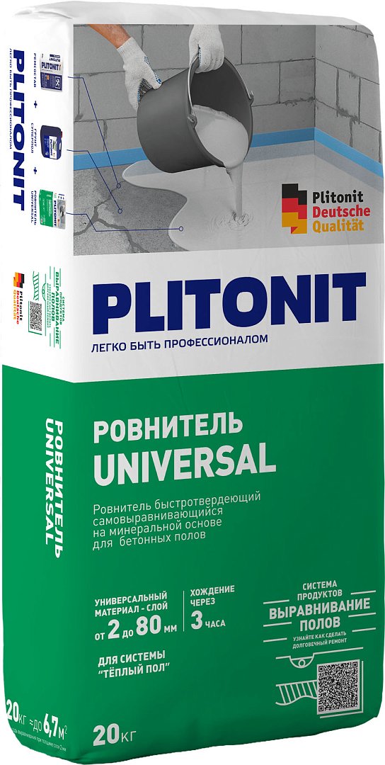 Ровнитель PLITONIT (ПЛИТОНИТ) UNIVERSAL быстротвердеющий для бетонных полов 20кг