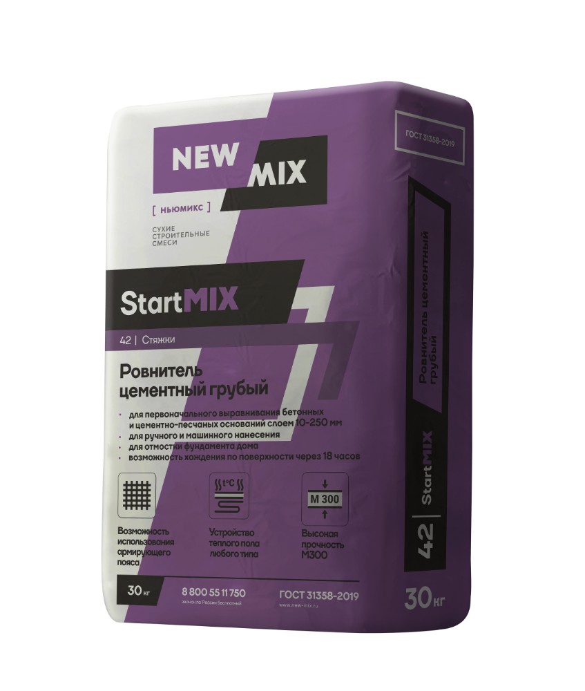 Стяжка для пола New Mix StartMix М-300 ровнитель грубый 30кг